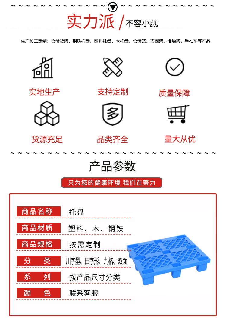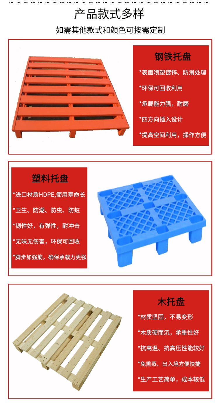 貨架托盤種類較多,常見的有塑料托盤、鐵托盤、木托盤等,可以單獨(dú)使用,也可以用于倉儲貨架倉庫貨架上,有現(xiàn)貨,可定制。