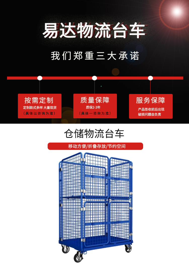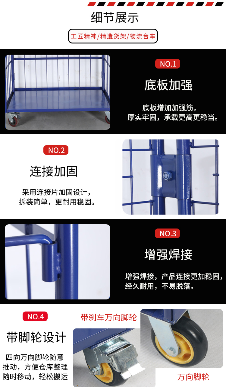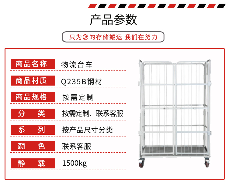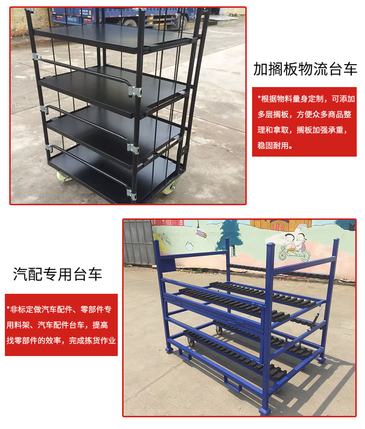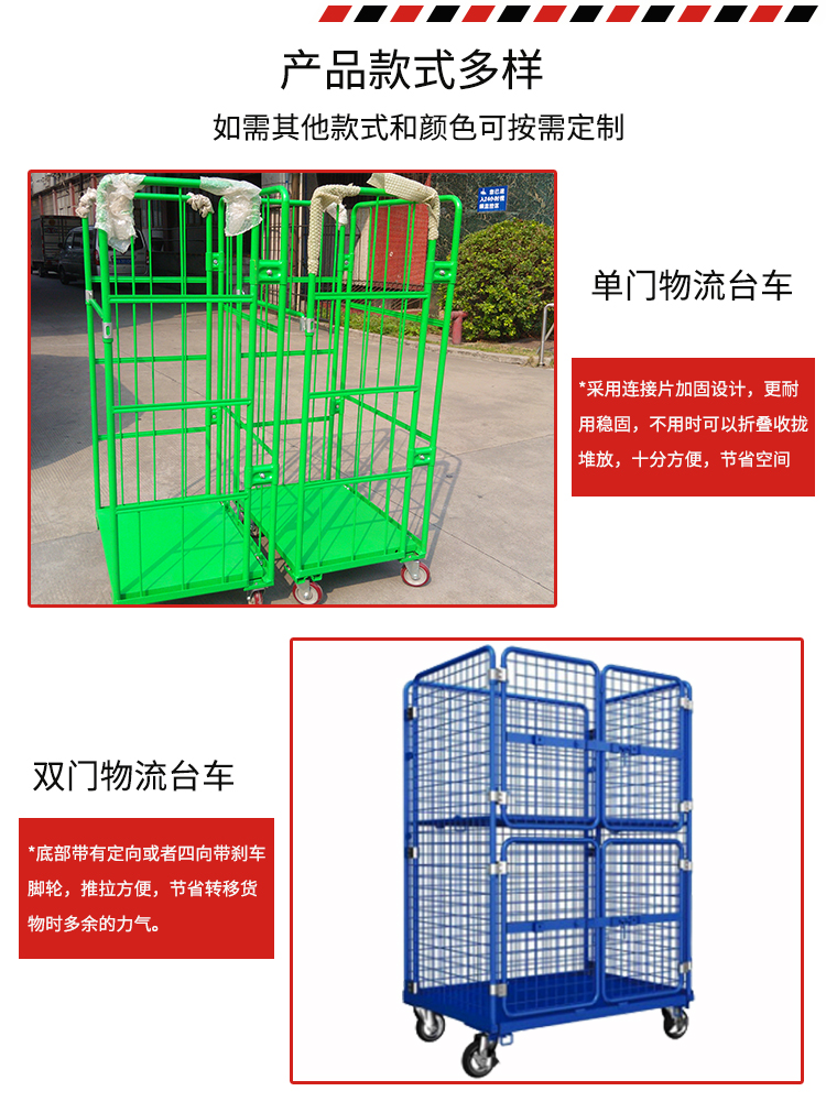 物流臺車也叫物流籠車,主要用于貨物的存儲及周轉(zhuǎn)。多種款式、顏色多樣,可按需求定制。