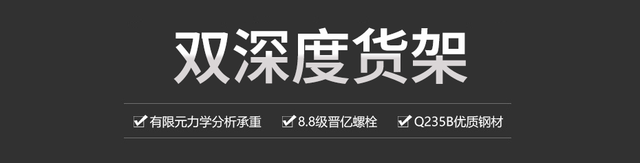 雙深度貨架也叫雙深位貨架,是重型高位貨架系統(tǒng),高度可設計到10米以上,充分利用倉庫空間,雙排并列設計,貨位密集存儲量大。